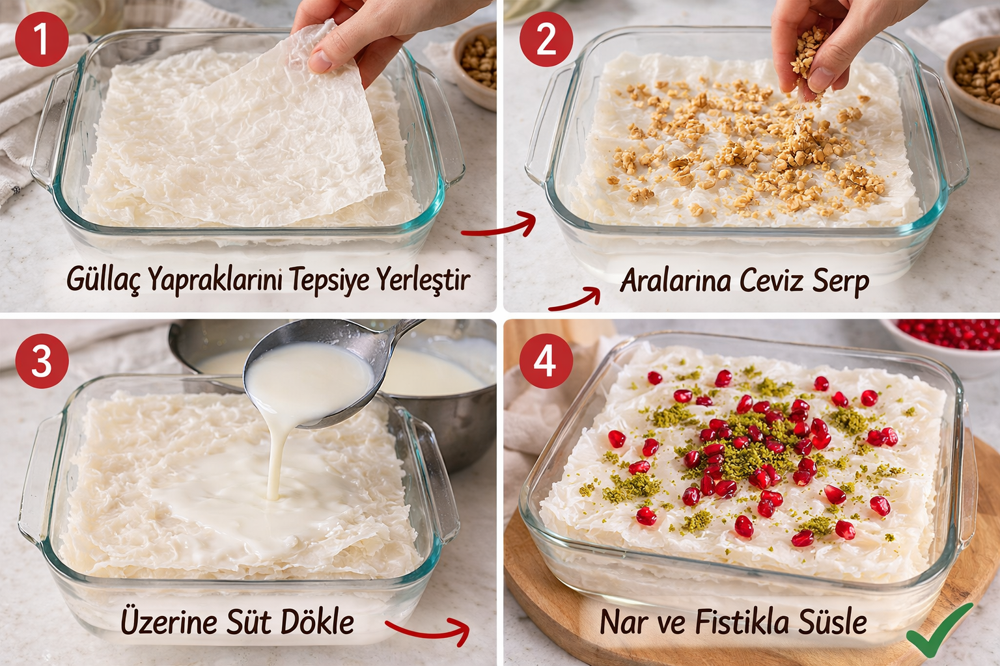 Ramazan sofralarına hem geleneksel hem de hafif bir tatlı eklemek isteyenler için güllaç tarifi harika bir seçenektir. Az malzeme ile hazırlanan bu tatlı, doğru tekniklerle yapıldığında sofranın en sevilen lezzetlerinden biri haline gelir.